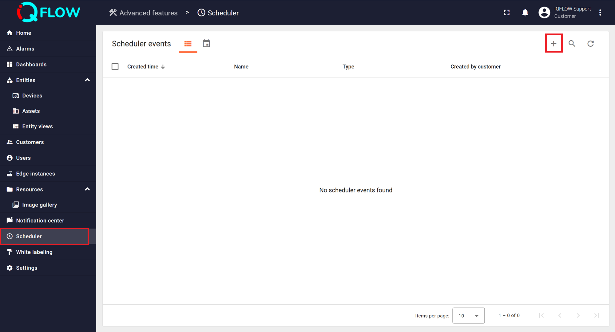 Scheduler events page displays current configured scheduler events. It allows to add, update or delete scheduler events. The page can be presented in two modes List view or Calendar view. The views can be switched by pressing corresponding icons in the page header.