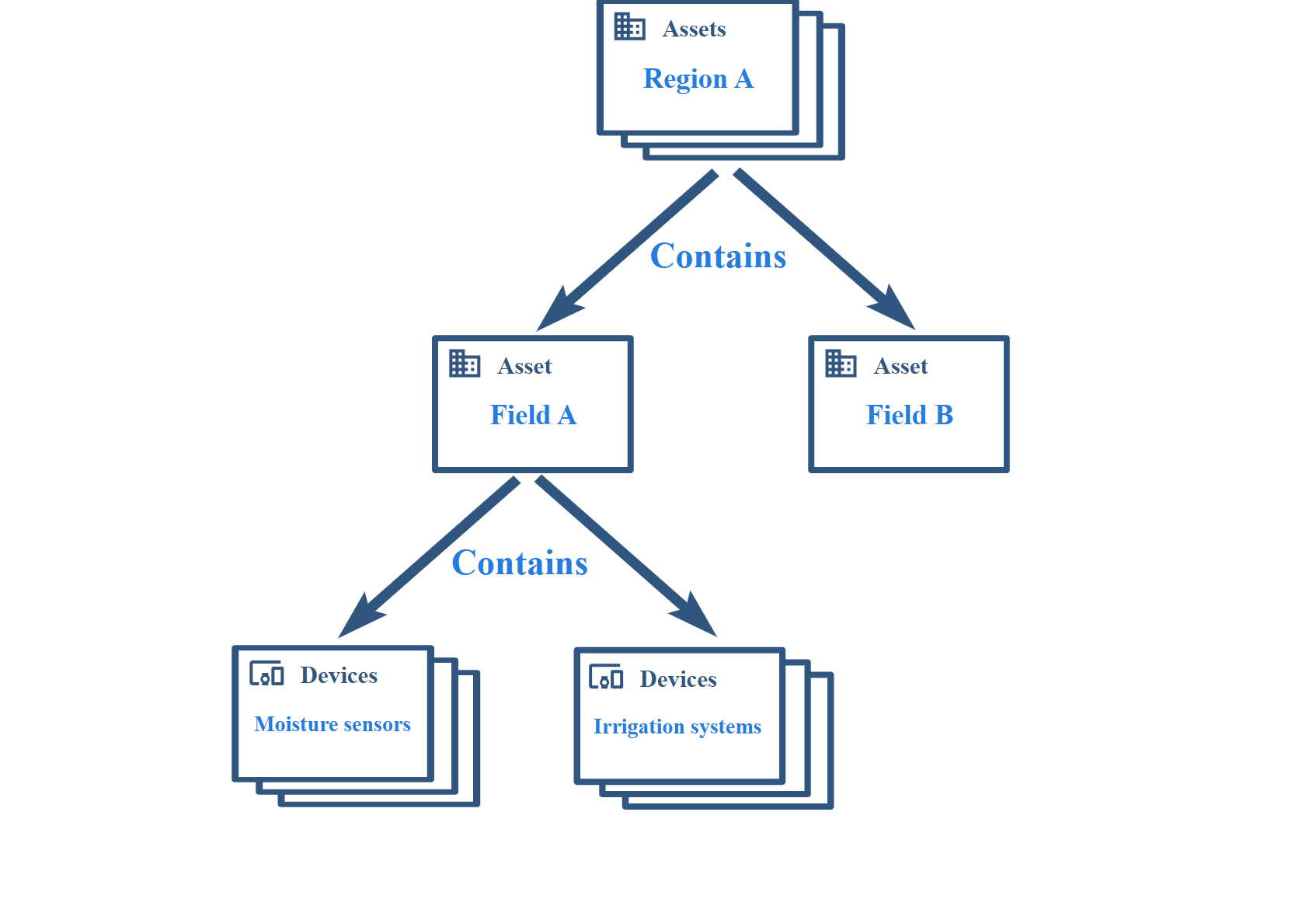 - Assets - abstract IoT entities that may be related to other devices and assets. For example factory, building, farm, mine;