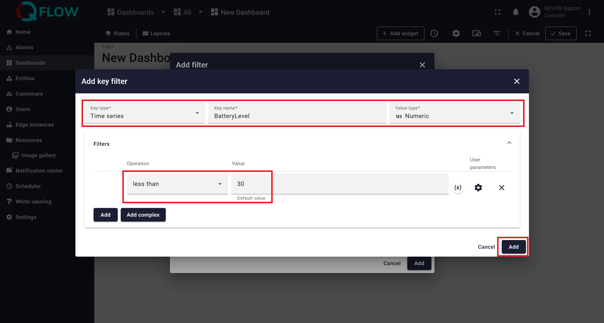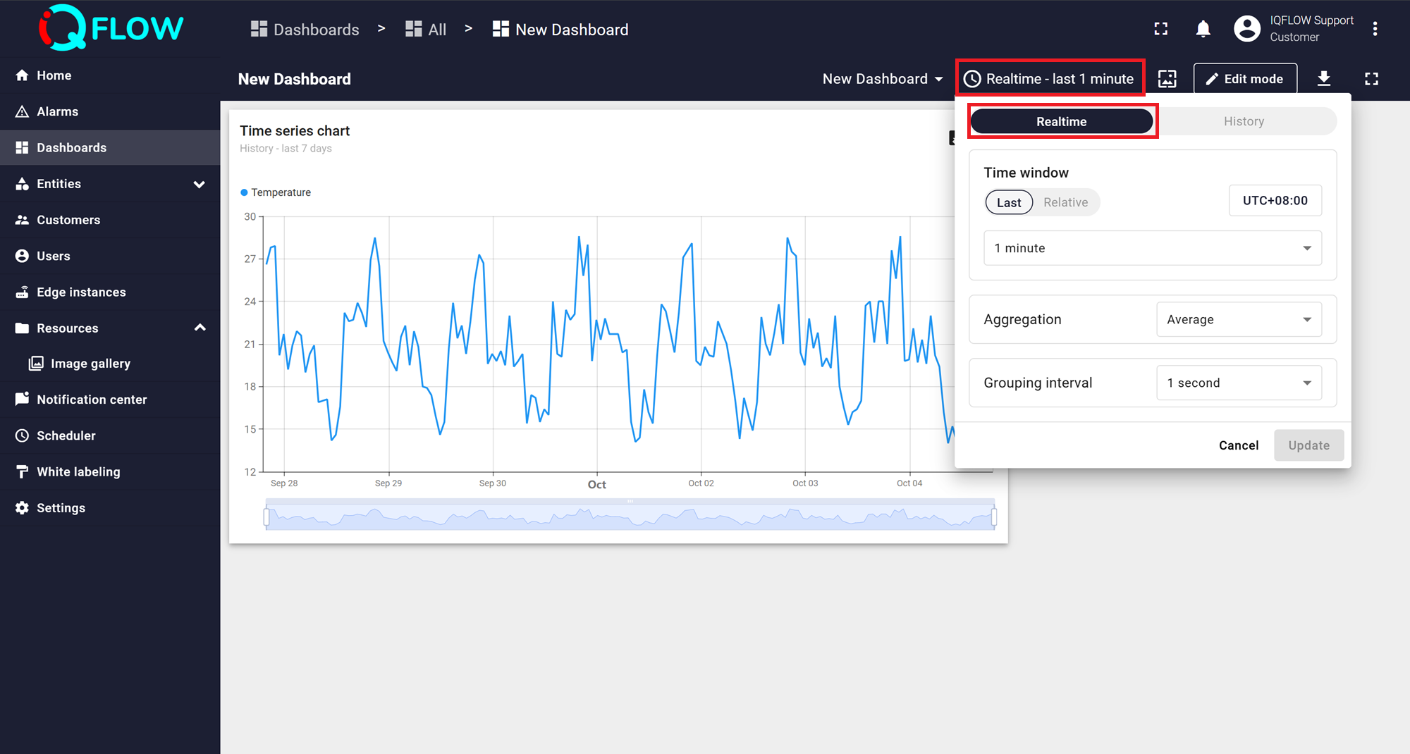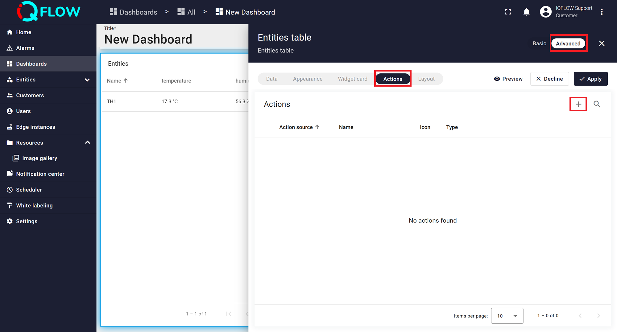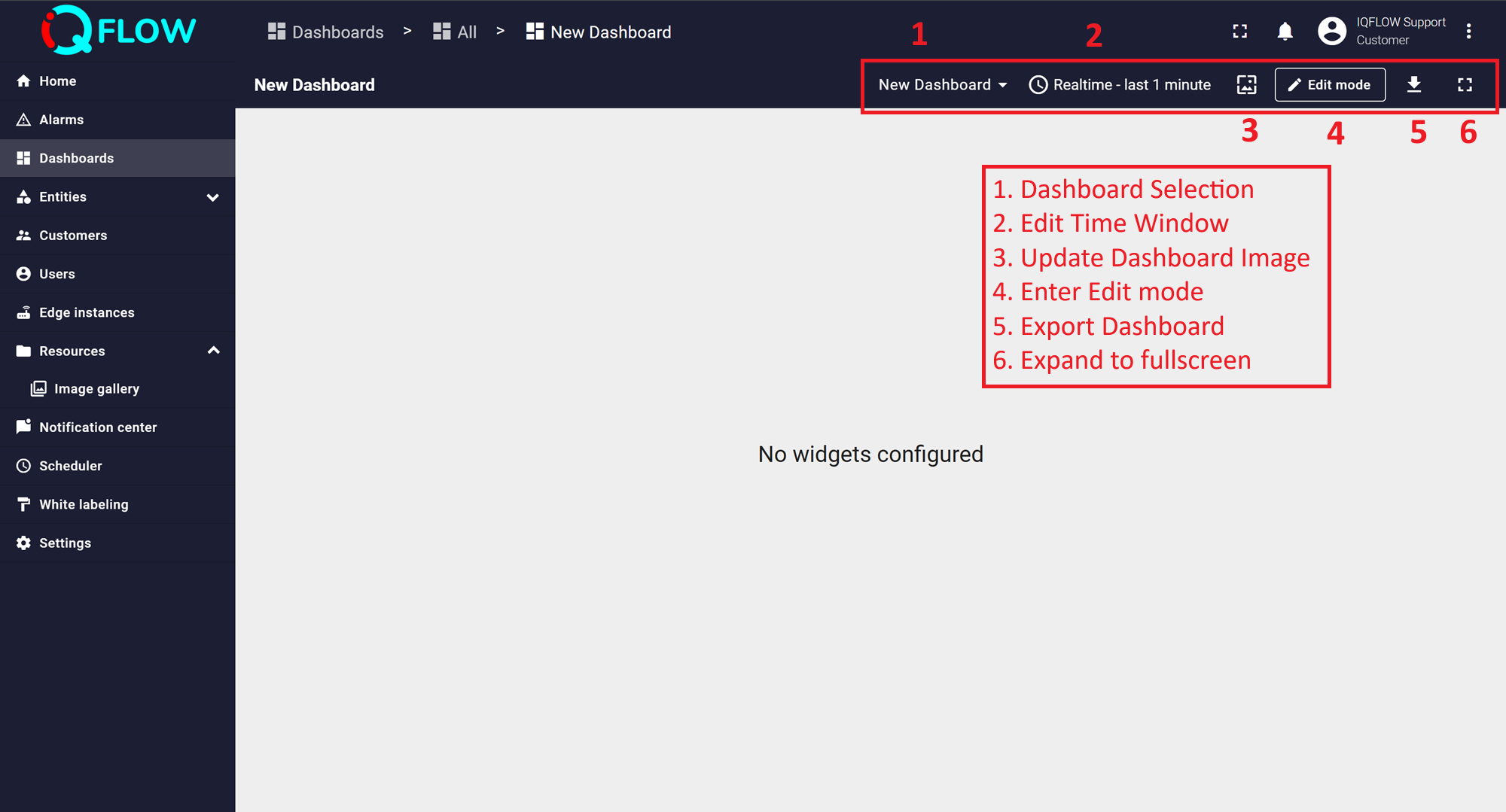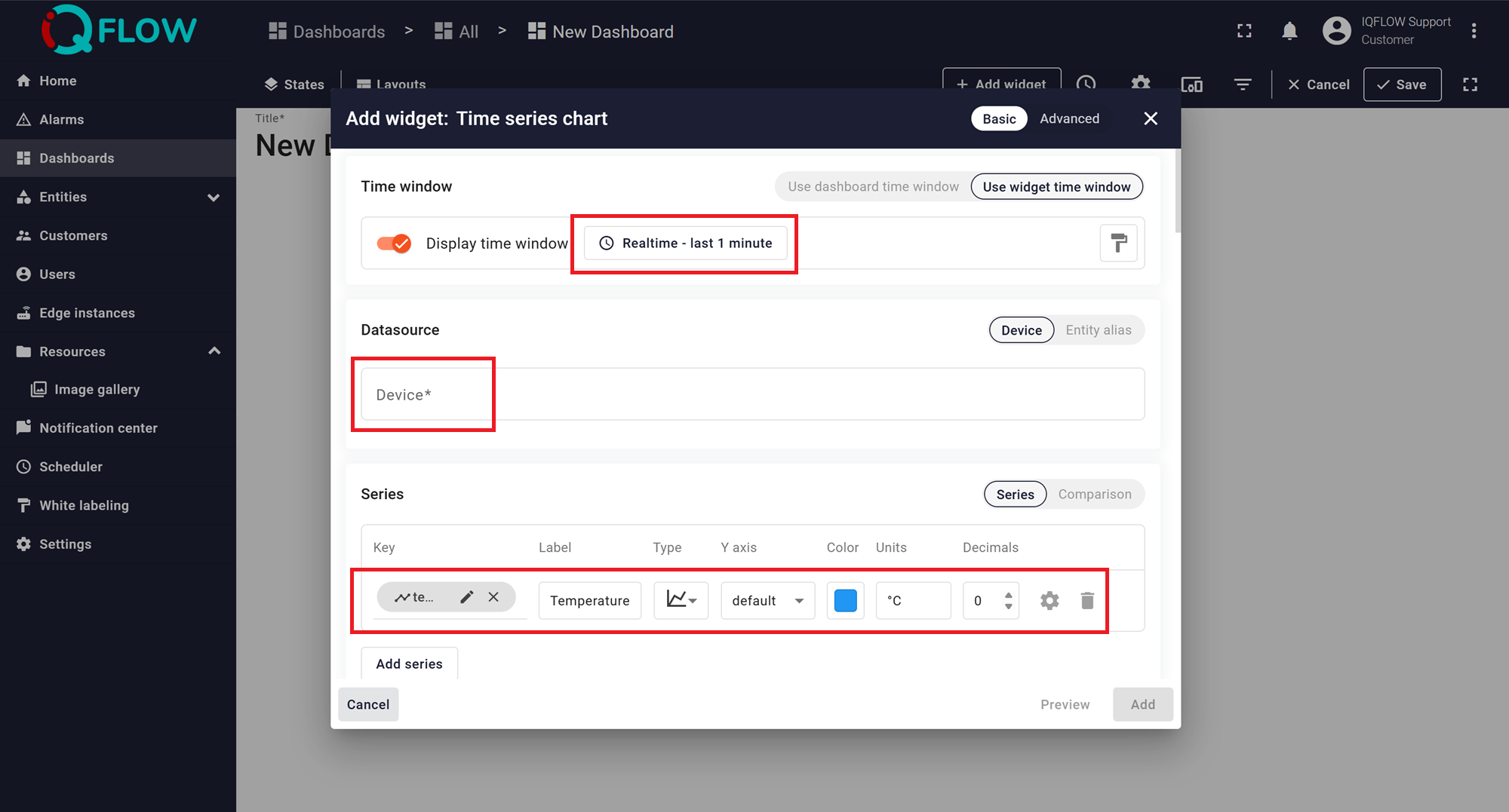 IQFLOW offers a powerful feature – the ability to create and customise interactive visualisations, also known as dashboards. These dashboards are instruments for monitoring and managing your data and devices efficiently. With IQFLOW dashboards, users can adapt interfaces to their specific needs, making it easier than ever to inspect their IoT devices and data. What’s brilliant is that each dashboard can be populated with numerous widgets, offering flexibility and customisation. These dashboards aren’t limited to a single data source; they can display data from various entities, including devices, assets, and more. Plus, you can assign dashboards to specific customers, ensuring that the right individuals or teams have access to the data they need.