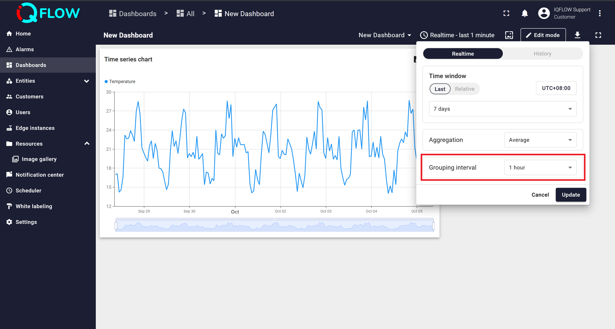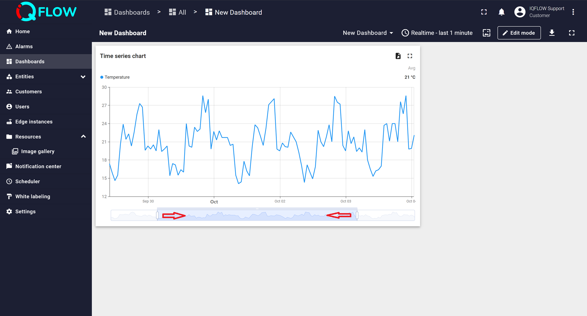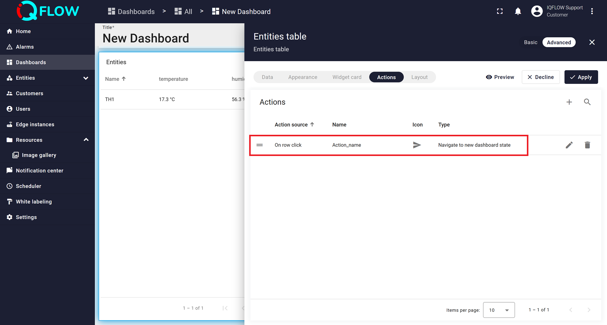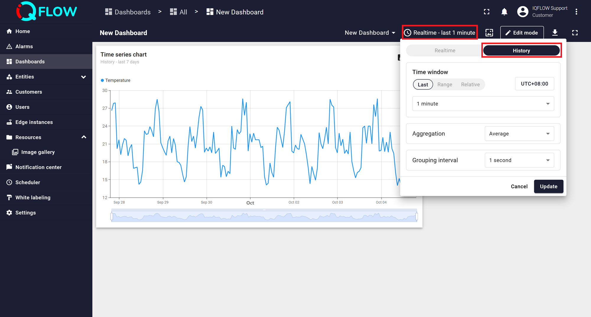 IQFLOW offers a powerful feature – the ability to create and customise interactive visualisations, also known as dashboards. These dashboards are instruments for monitoring and managing your data and devices efficiently. With IQFLOW dashboards, users can adapt interfaces to their specific needs, making it easier than ever to inspect their IoT devices and data. What’s brilliant is that each dashboard can be populated with numerous widgets, offering flexibility and customisation. These dashboards aren’t limited to a single data source; they can display data from various entities, including devices, assets, and more. Plus, you can assign dashboards to specific customers, ensuring that the right individuals or teams have access to the data they need.