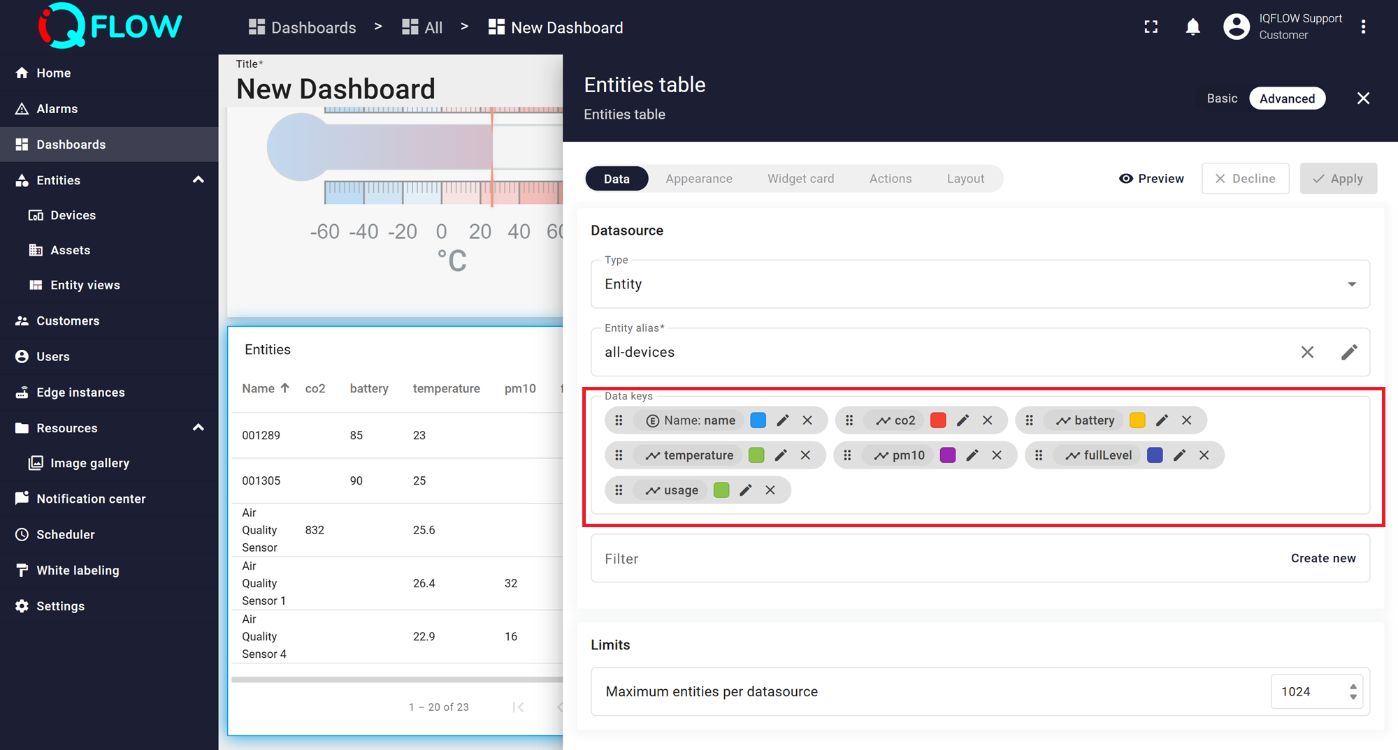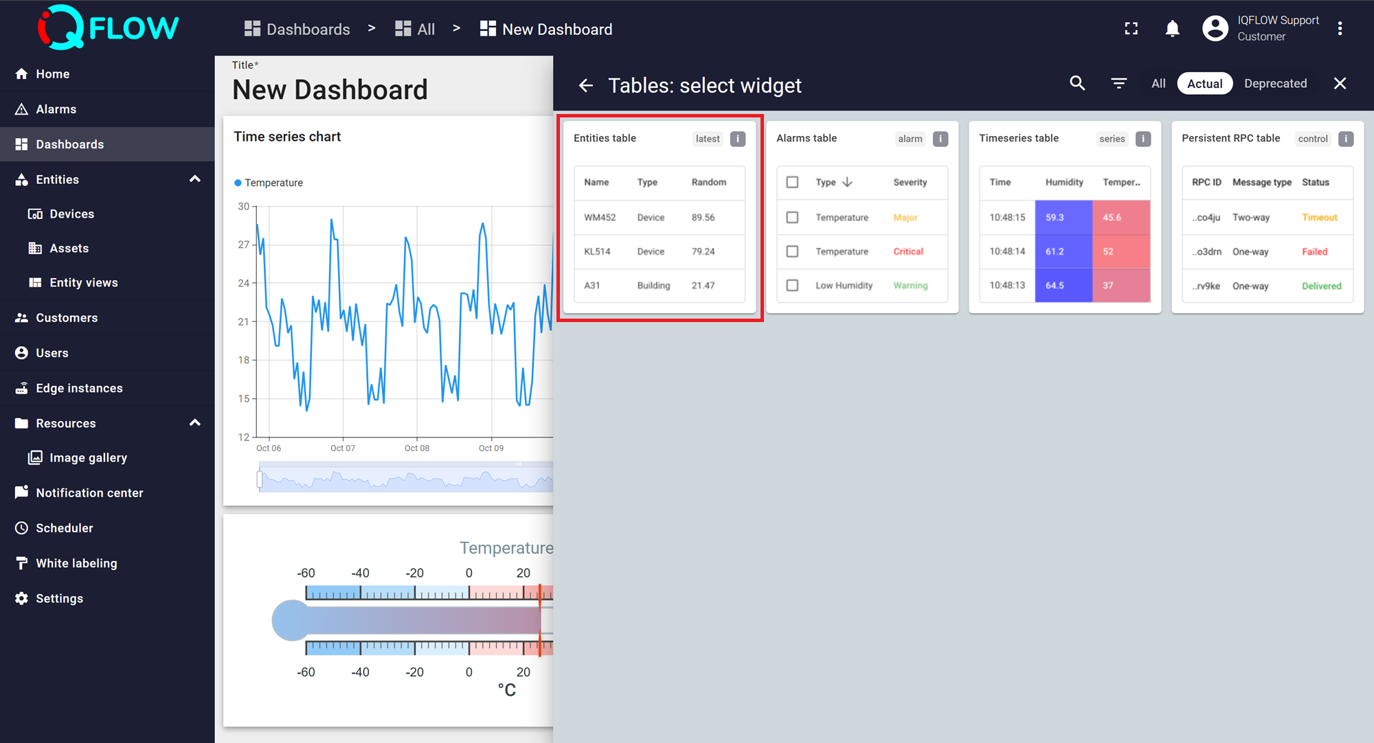 - A widget has been added that displays all devices using an entity alias as the datasource.